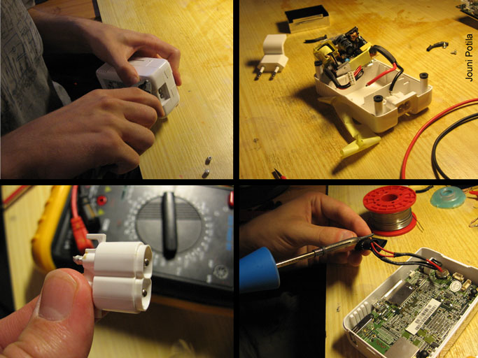 Vaihdoimme eurooppalaisen virtapistokkeen tilalle yhden yleis-AC-adapterini sovitinpäistä niin, että adapterin saa tarvittaessa vielä irti itse laitteesta. Ainoastaan siis tuo yksi sovitinpää liimattiin kiinni SheevaPlugiin kiinteästi. Liimalla ja jonkin johdinjohdon vanhalla suojamuovikuorella ylimääräiset aukot koneen kotelossa sai tilkittyä nätisti, ja lopputuloksesta tuli suhteellisen siisti. Valitettavasti en ottanut valmiista laitteesta kuvaa ollenkaan, ja ehdin kytkeä SheevaPlugin takaisin paikoilleen niin, että en sitä irti enää viitsi ottaa valokuvaamista varten. Joka tapauksessa lopputuloksena minulla on jälleen toimiva plugitietokone ohjaamassa kämpän valaistusta!